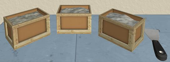 2. Расположите металлический стакан возле ящиков. Шпатель примените к одному из ящиков с грунтом. Металлический стакан анимировано заполнится за несколько движений.