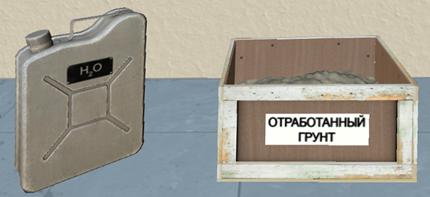 Рис. 3.5. Канистра с водой, ящик для отработанного грунта